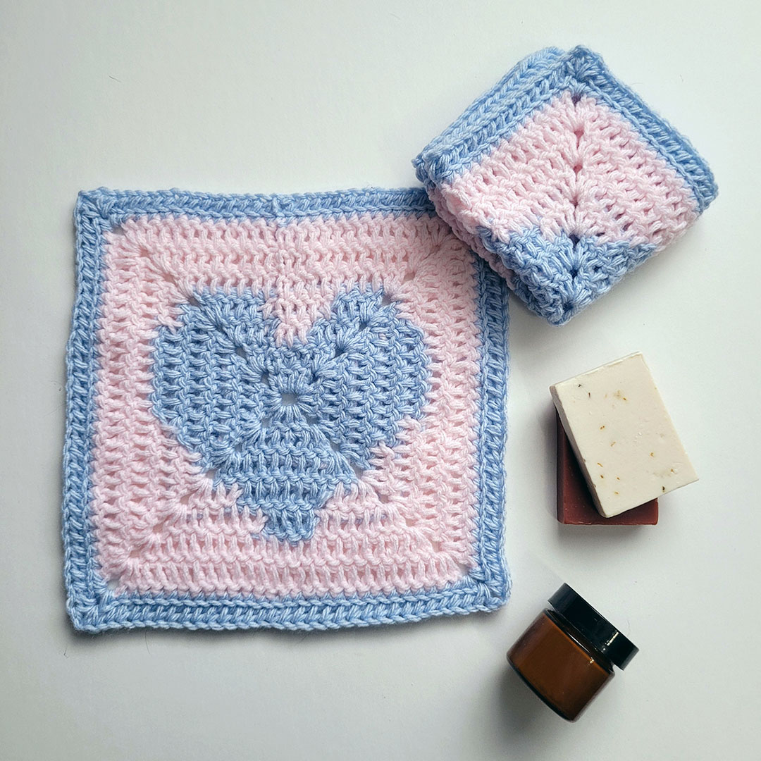 I could not wait to share the love I found in this heart themed pattern which can be easily used as a washcloth or added to an afghan or cardigan pattern.